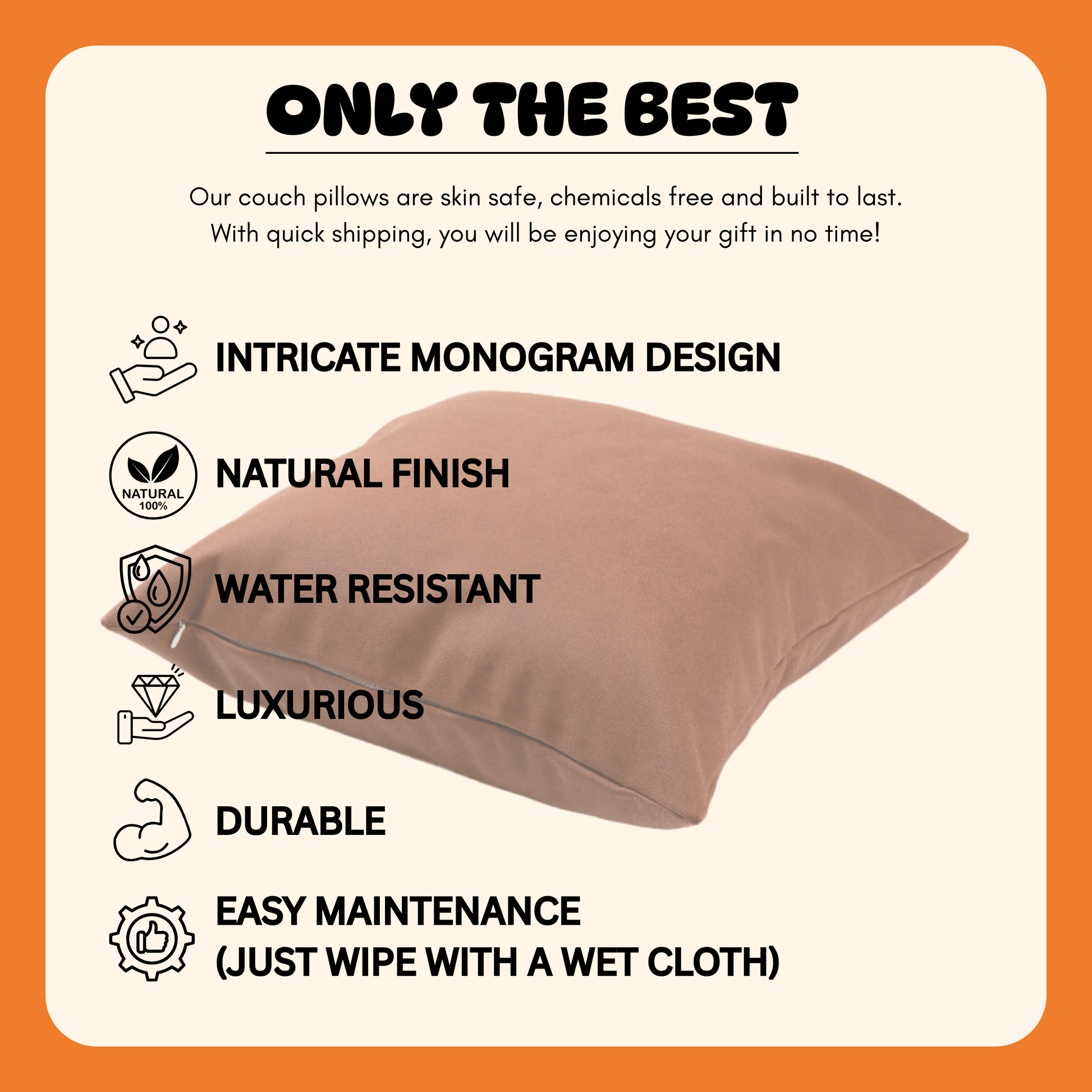 Add a timeless, personalized touch to your living space with our custom engraved leatherette throw pillows. Each pillow is laser engraved with the letter of your choice, making it a perfect accent for sofas, beds, chairs, or as a thoughtful personalized gift.